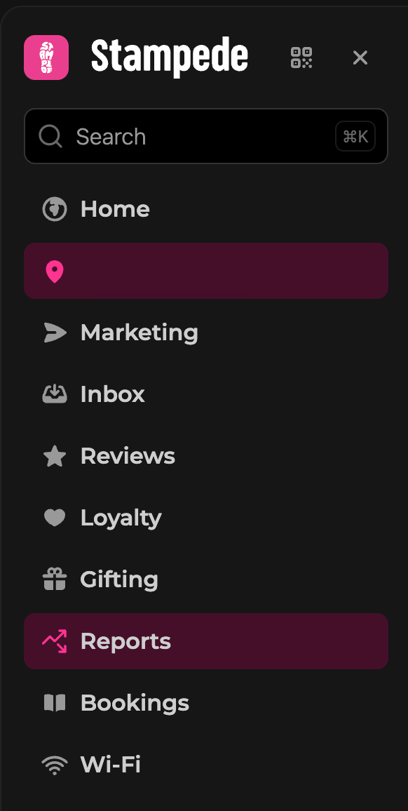 Log into product.stampede.ai, then on the left pane, click 'Reports'