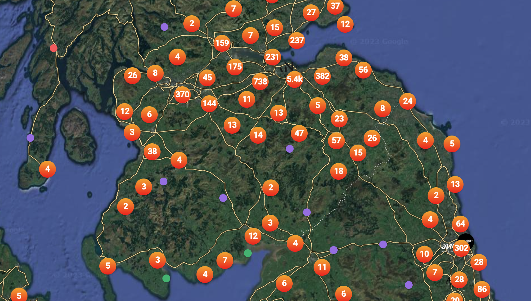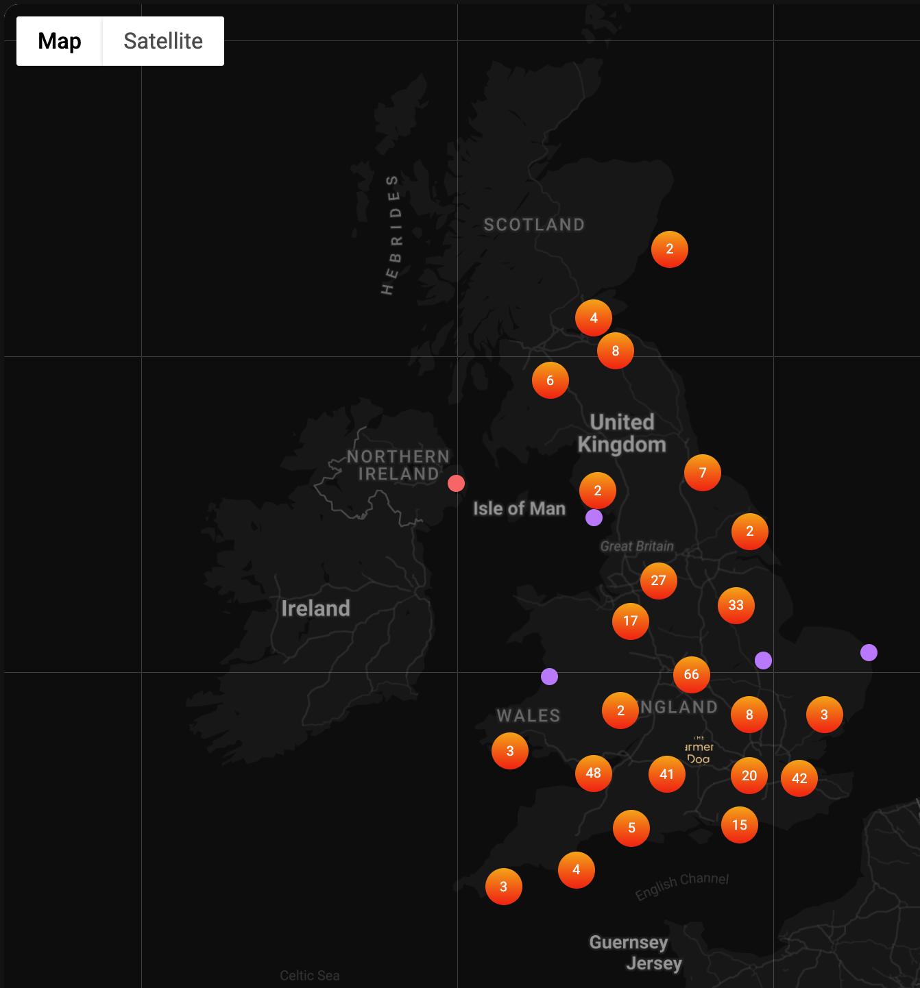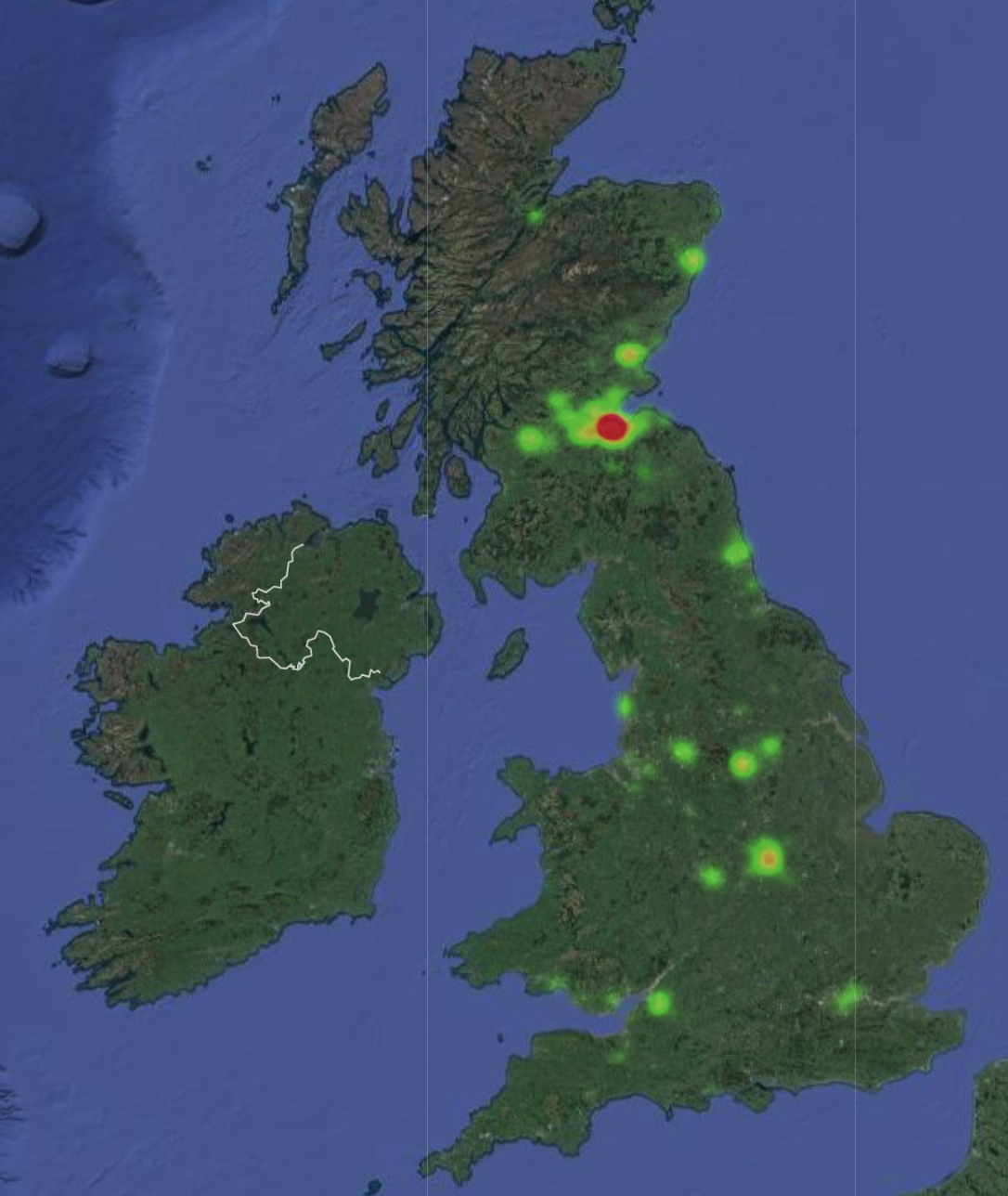 When you open origins, you'll see a map of the UK. Each number represents a contact in that area. You can also spot venues in Edinburgh, Newcastle, and Sheffield. The numbers closest to the venues are usually higher, as locals tend to visit more often.