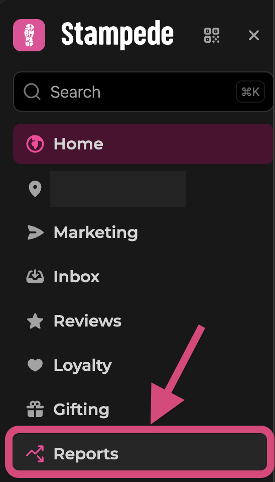 First, in the bottom-left corner of the screen, click the 'Reports' button.