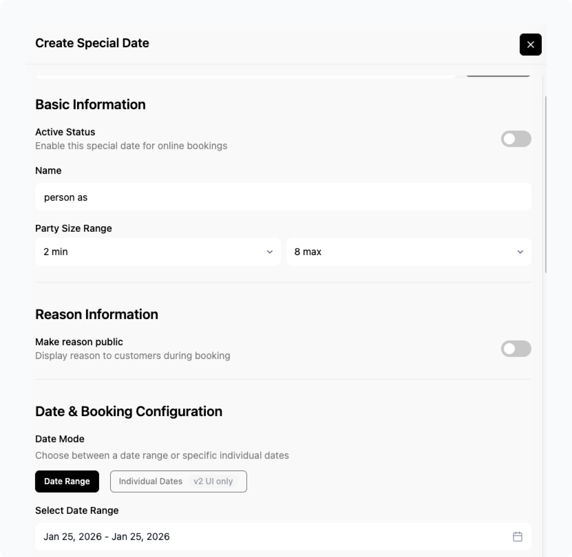 Once your booking type is set up or updated, click Update Special Date. It will now be live in your system.
