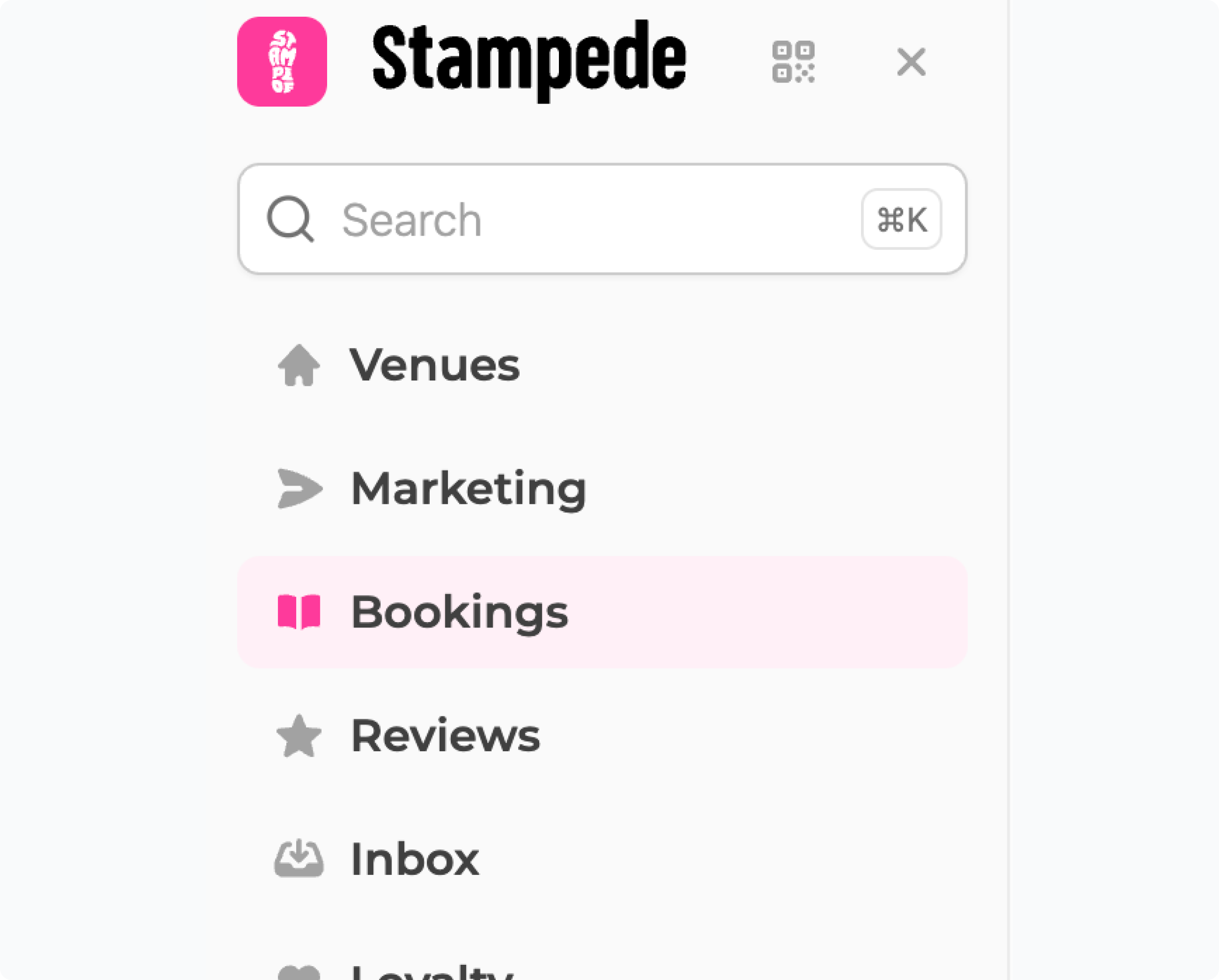 (If you have only one venue, selecting Venues will take you straight to your Bookings.)