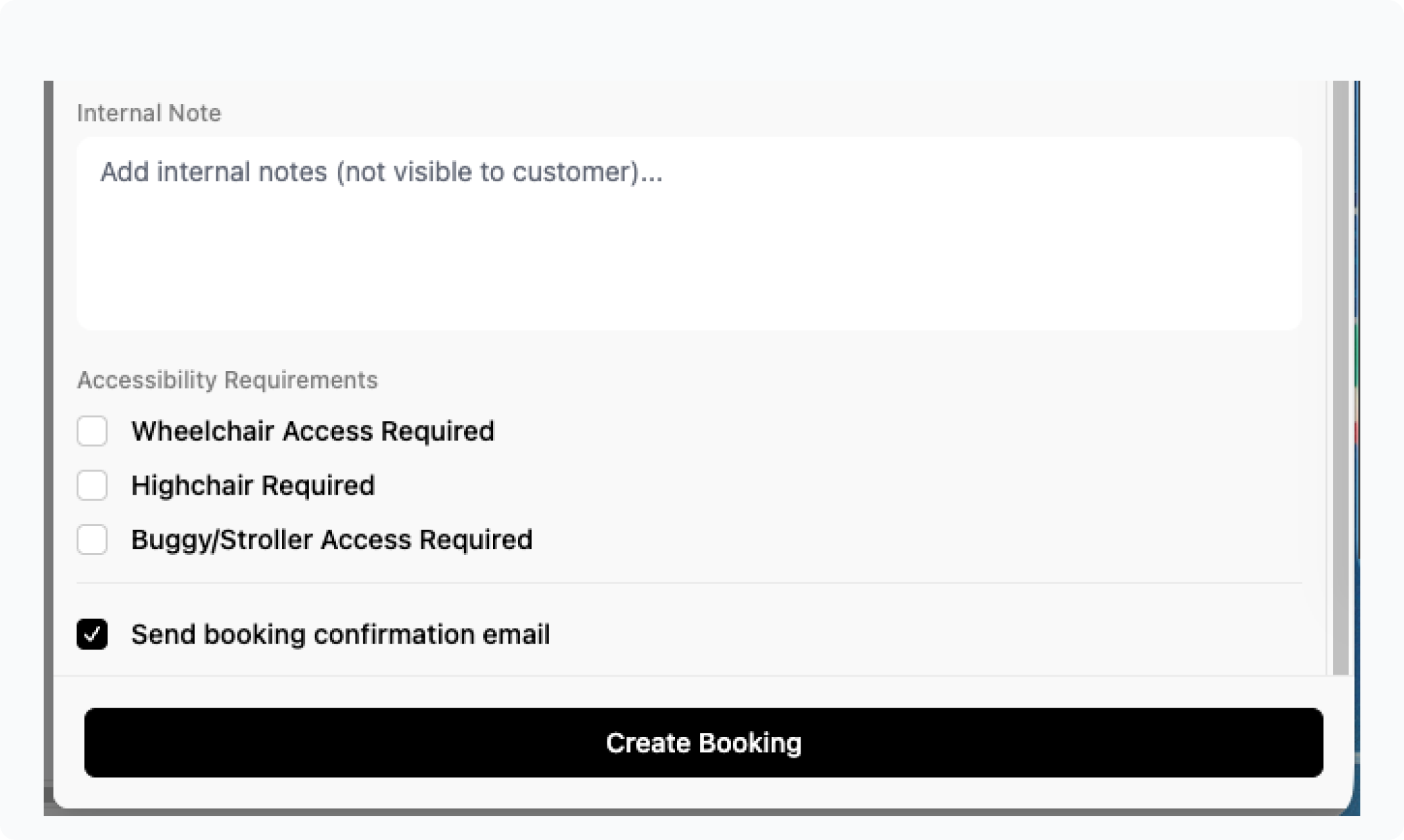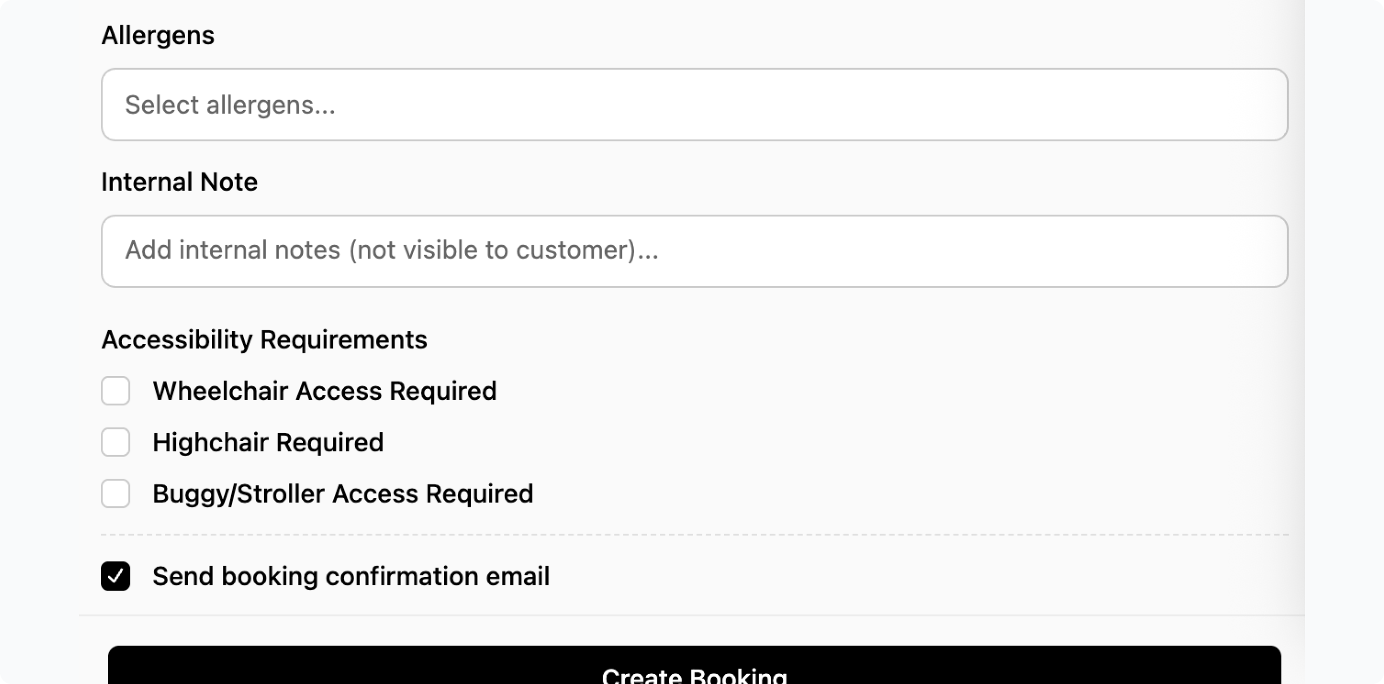 Add any notes for staff (e.g. allergies, VIP, etc.). - Accessibility Options