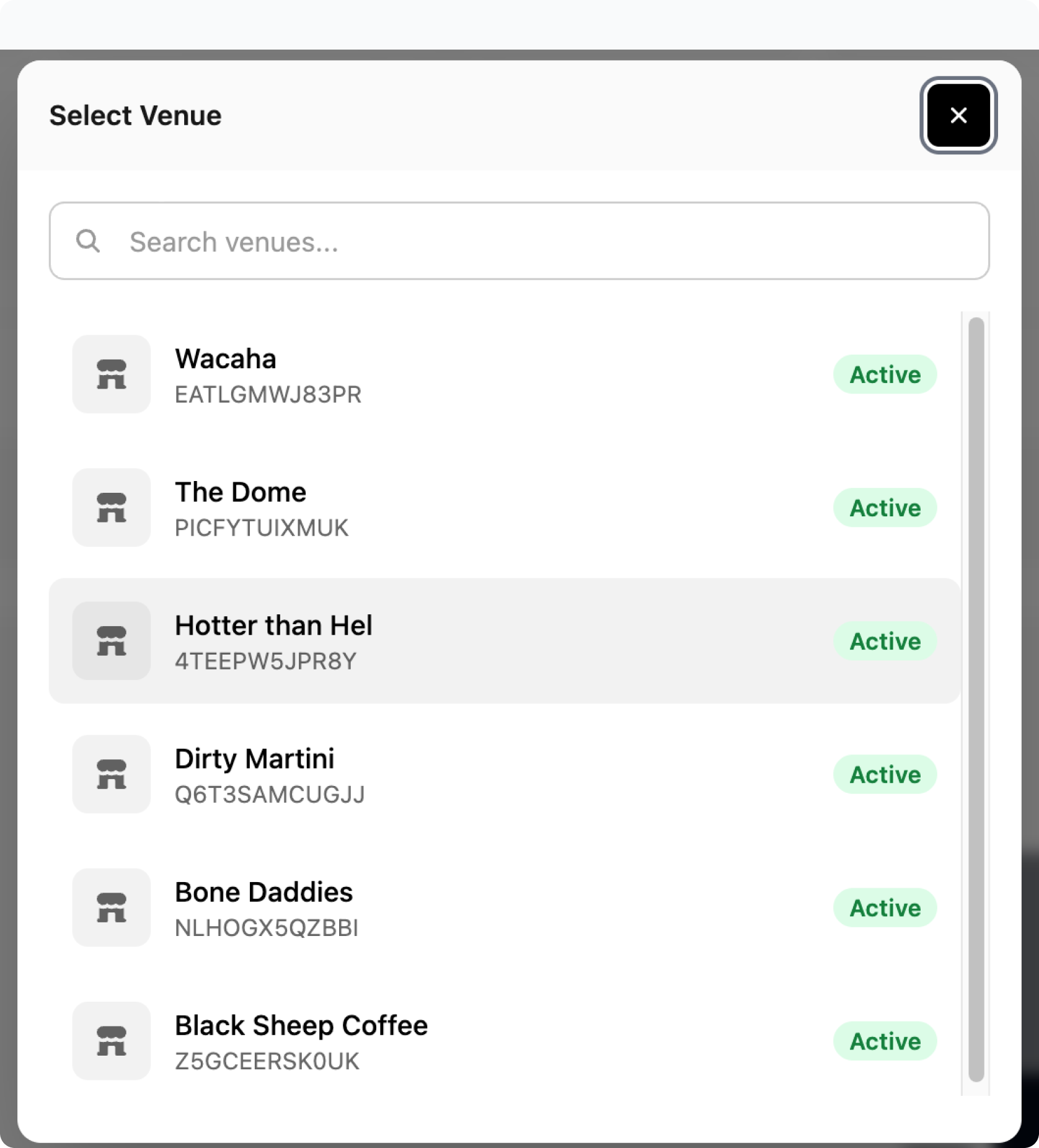 If you have multiple venues, you will need to choose the one you want to configure. Select venues to open the list.
