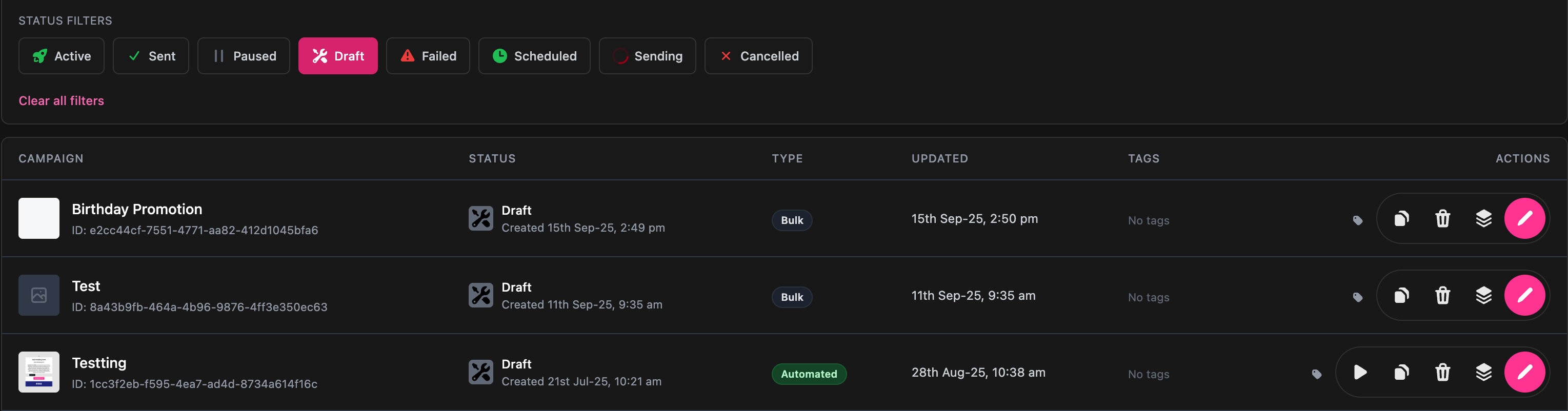 Just a quick note: once a campaign has been sent out, you won't be able to access those template revisions since they've already been shared with customers.