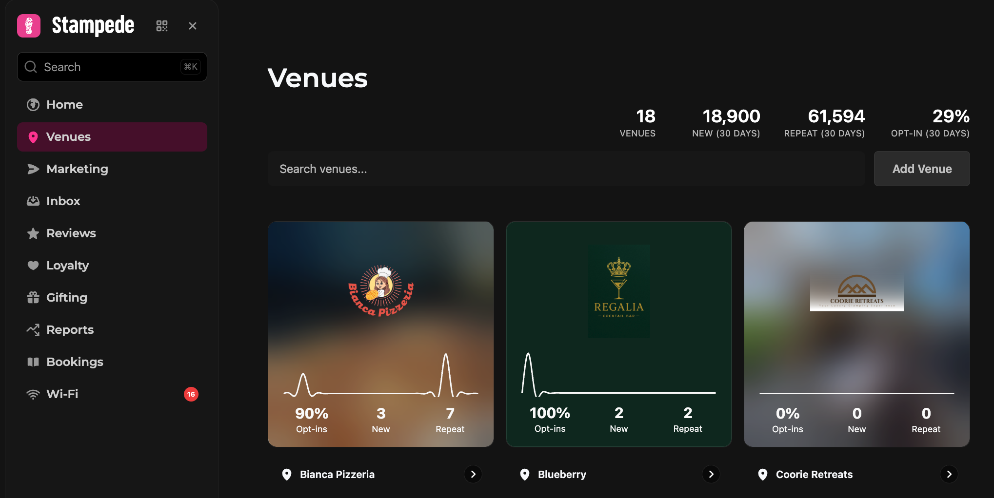 Go to Venues and select the venue you wish to configure.