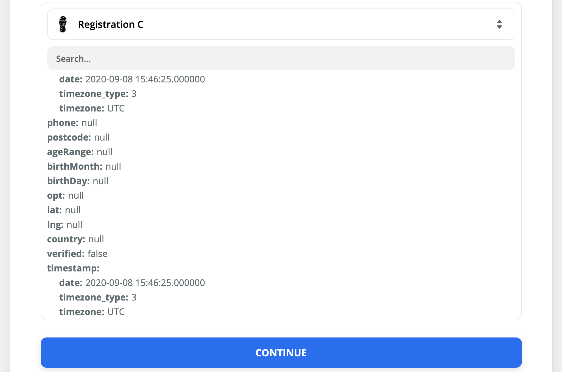 7. Find Data: This step is basically a test to see if you can pull through the data you need. It will give you a preview similar to the one below where you can see things like email, phone names, etc.