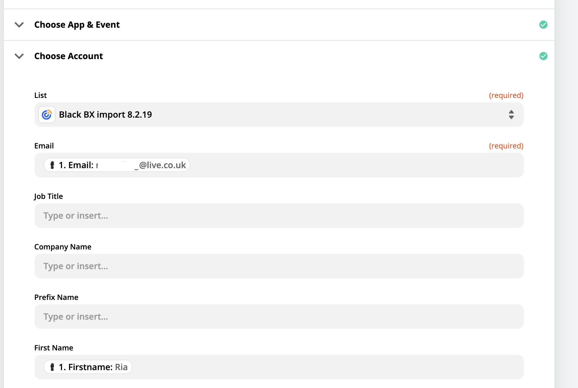 Put these in, then go back to Zapier and select ‘Save + Continue’.