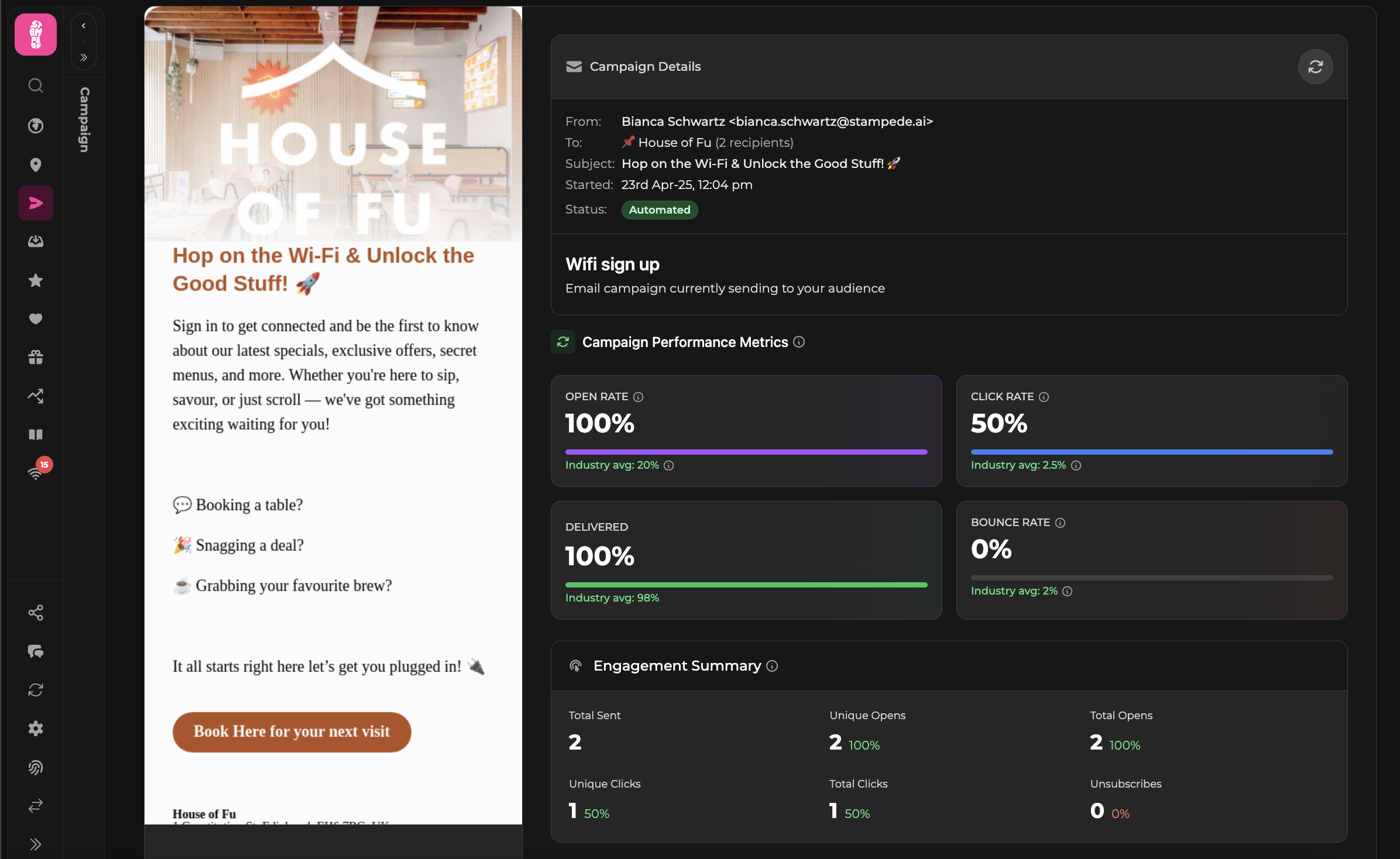 Finally, we arrive at the sending report, which details how many of your customers opened, interacted with, and received your email campaign.