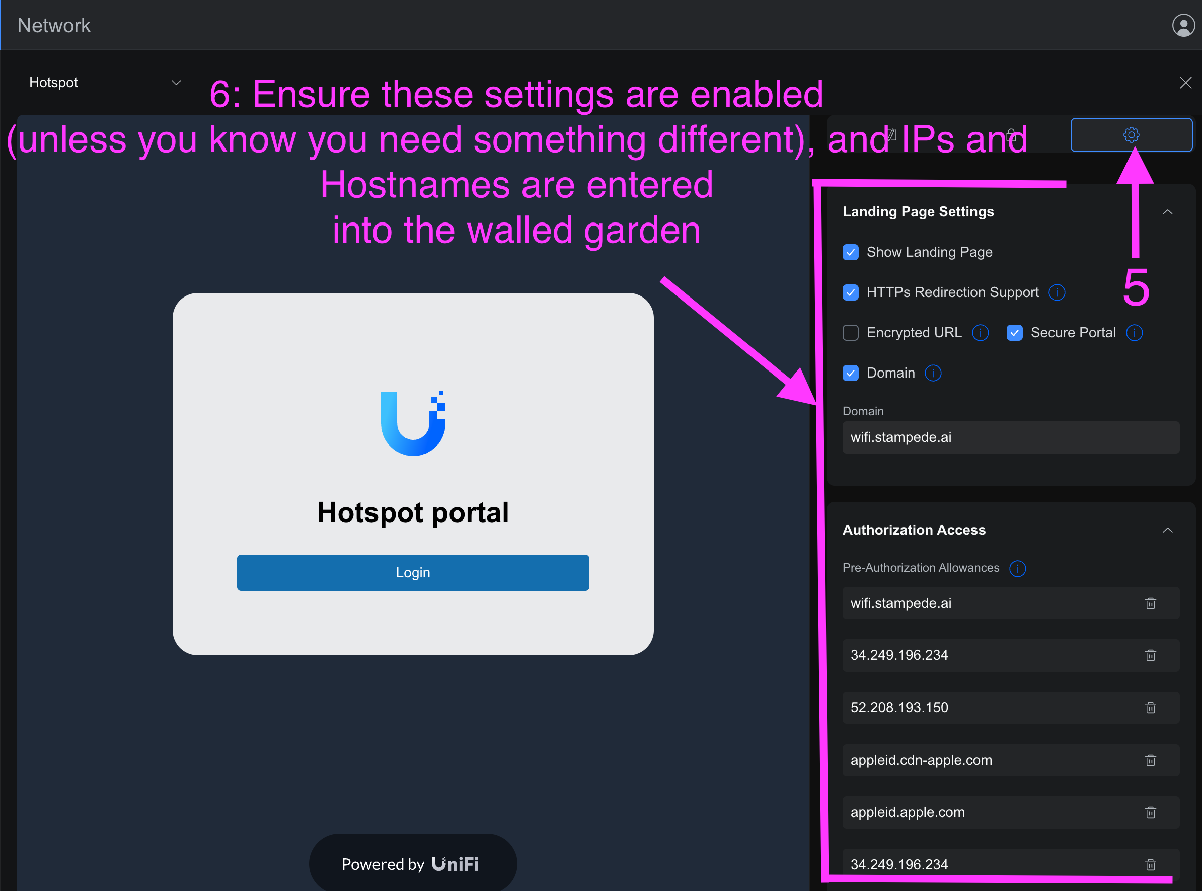 Simply enable the captive portal on your guest Wi-Fi in the controller. If everything is configured correctly, the settings will automatically be pushed to the hotspot portal and you’ll be ready to go.