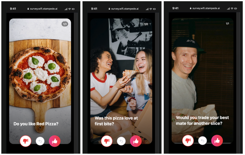Want quick, instant feedback from your guests? Survey Cards let you ask simple Yes/No or Like/Dislike questions right after guests log into your Wi-Fi. Think of it like Tinder for feedback guests swipe left or right to answer..