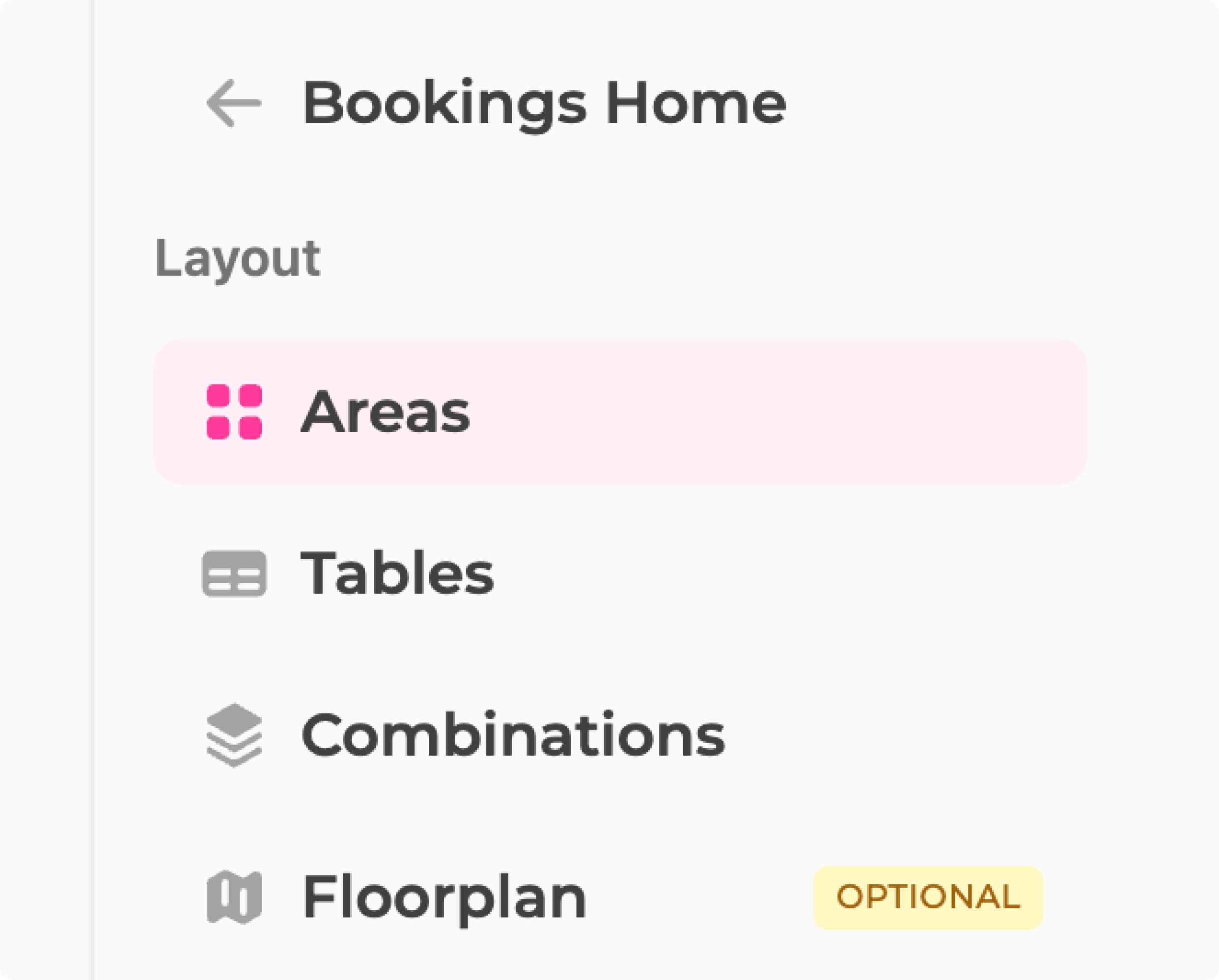 To set up areas in your venue to assign tables, go to Bookings to open the dashboard.