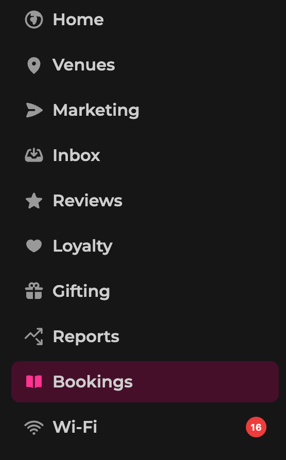 Head to Venues from the left-hand navigation bar, then select Bookings to open the dashboard.