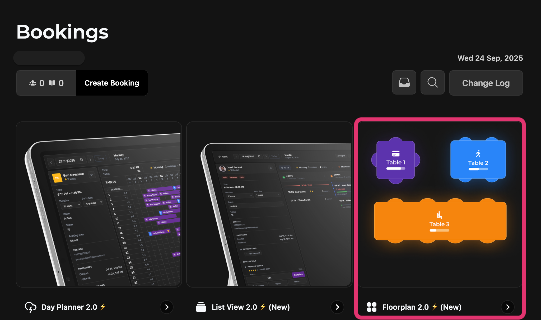 Scroll to the bottom of the bookings page and click Floor Plan 2.0.