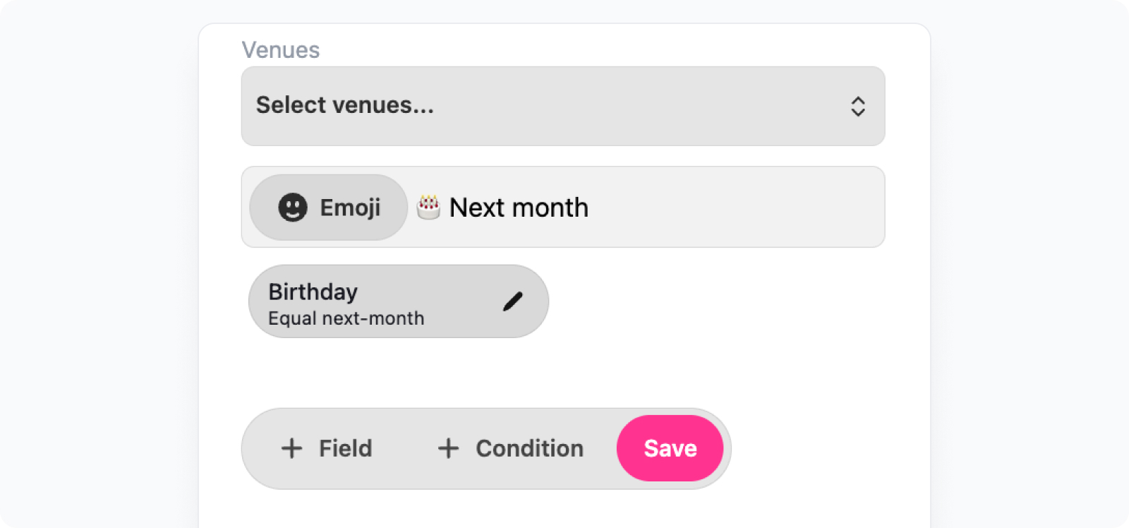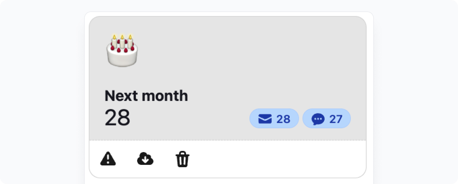 If today’s month is August, the campaign will target all customers with a birthday in September (e.g. 01/09, 15/09, 30/09).