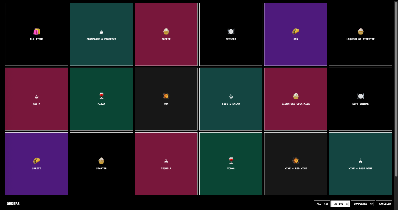 ⚠️ The categories shown in the example below are for illustration only. Your Terminal will display categories and items that are specific to your own menu.