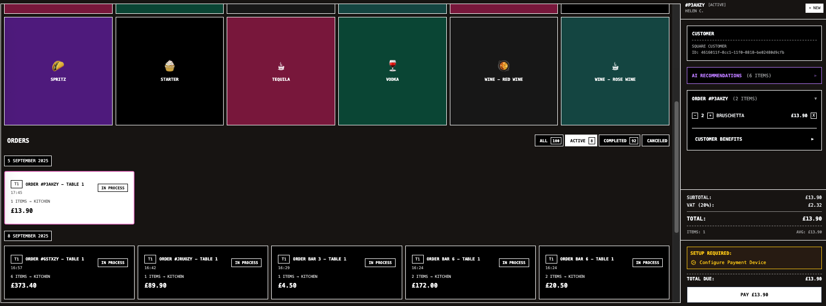 You now understand how to use the Square Terminal within Stampede from browsing your own menus to managing orders and making the most of AI recommendations.