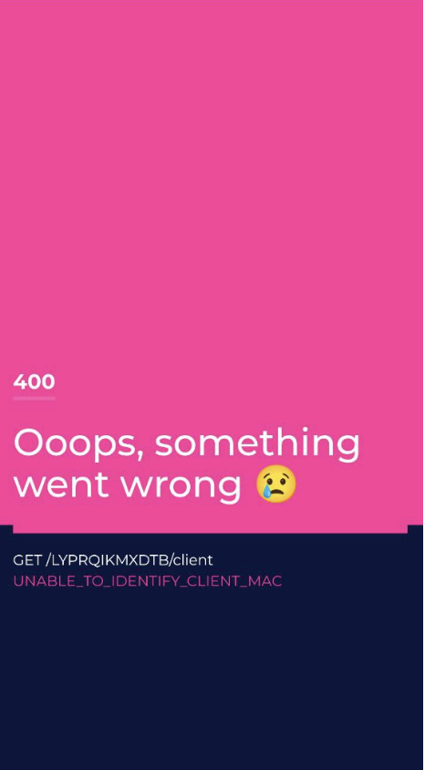 This error means the hardware or network setup is sending unreadable data. It’s often caused by incorrect hardware, encryption settings, or misconfigured equipment. Ask the customer to contact their IT provider or the person who set up their network or captive portal to check the configuration.