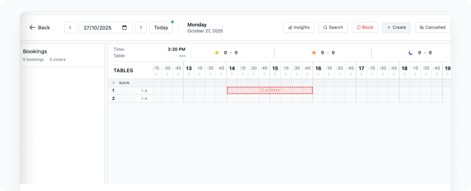 In this article, you’ll learn how to close out specific tables or full areas in the Day Planner.This is ideal when hosting private events, performing maintenance, or reducing capacity in part of your venue while keeping the rest open.