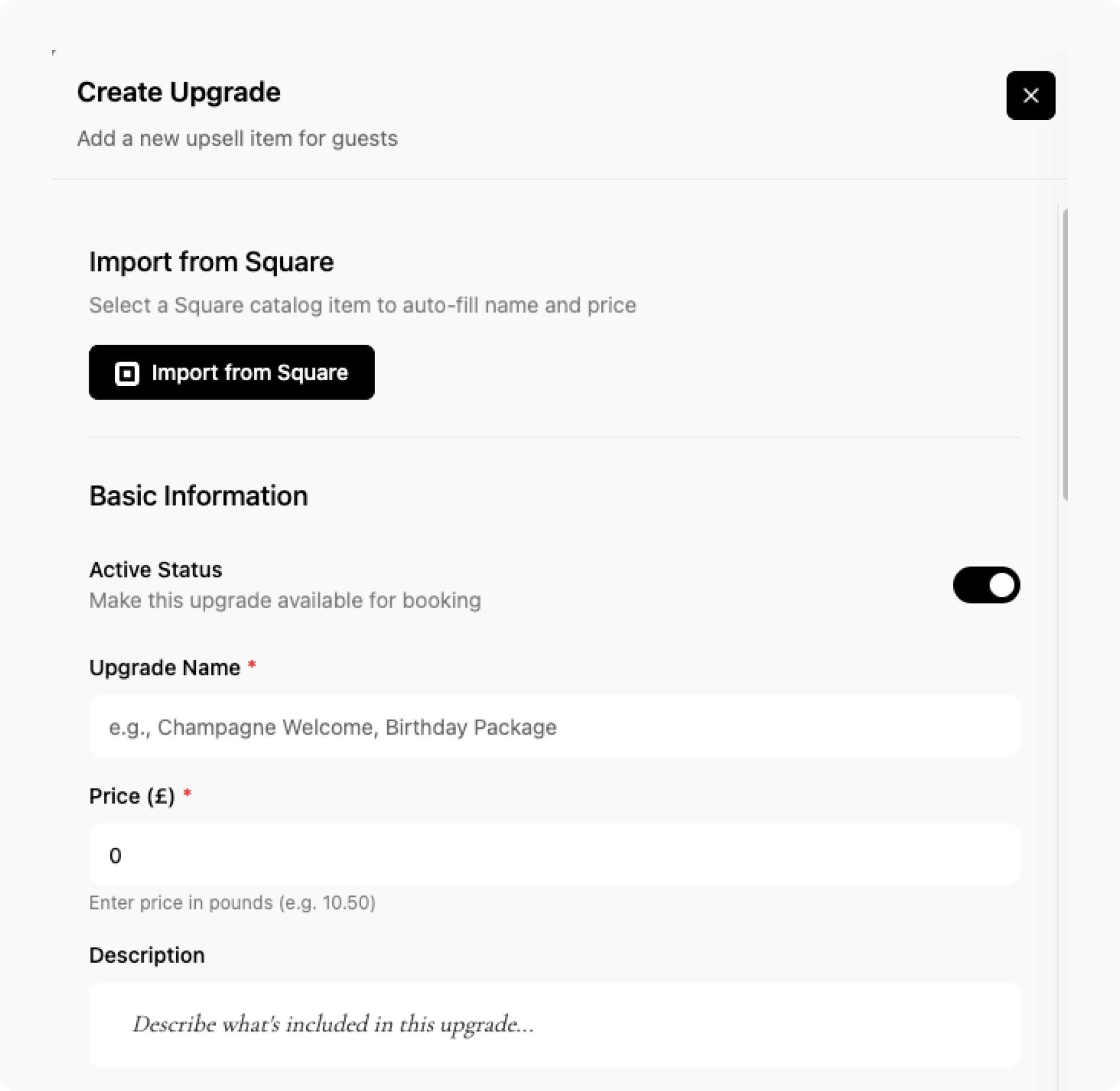 - Price: Set the price for your upgrade.