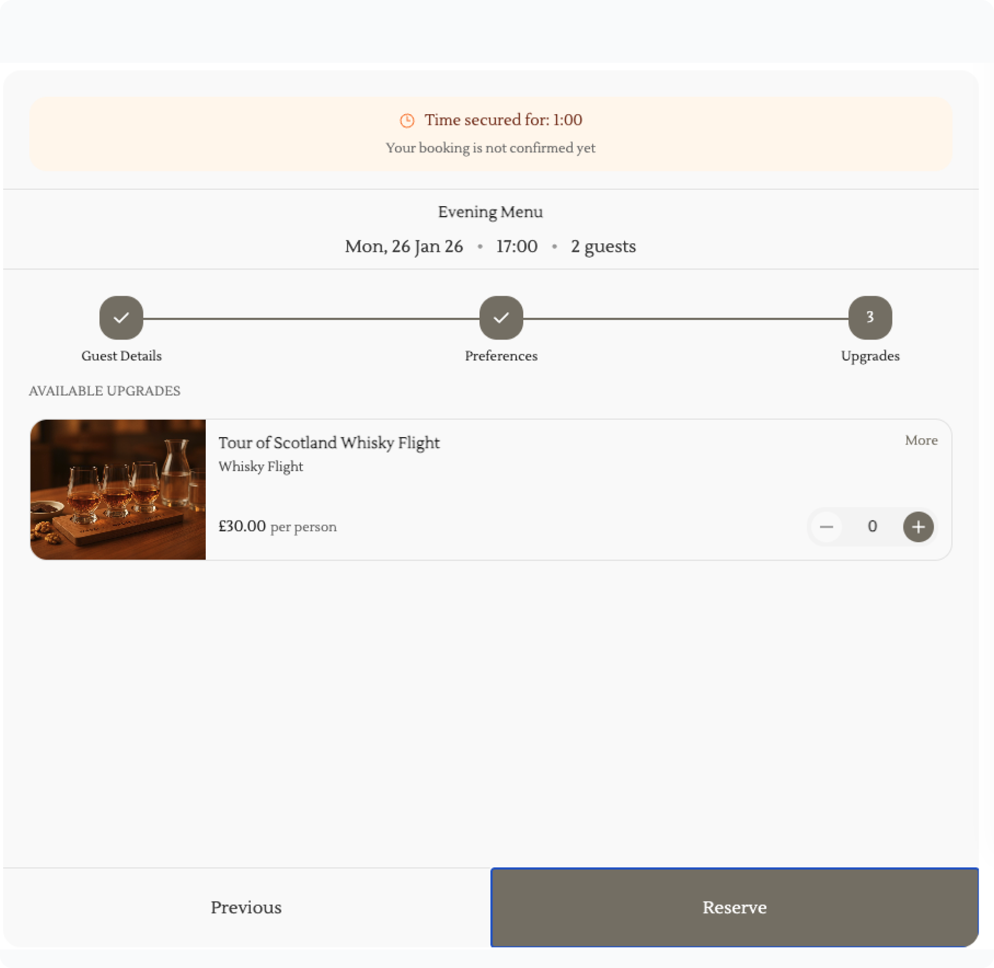 Now that your upgrade is created, customers will be able to add these into their bookings. This option will be available on the final booking page before confirming the booking.