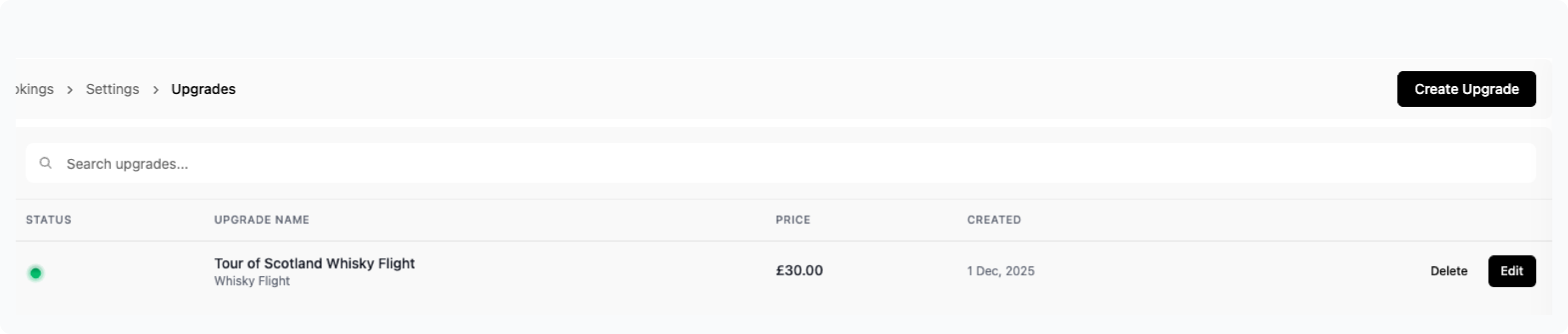 Once open, you’ll see a list of all current upgrades you have created. To create a new one, click Create Upgrade.