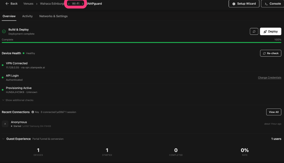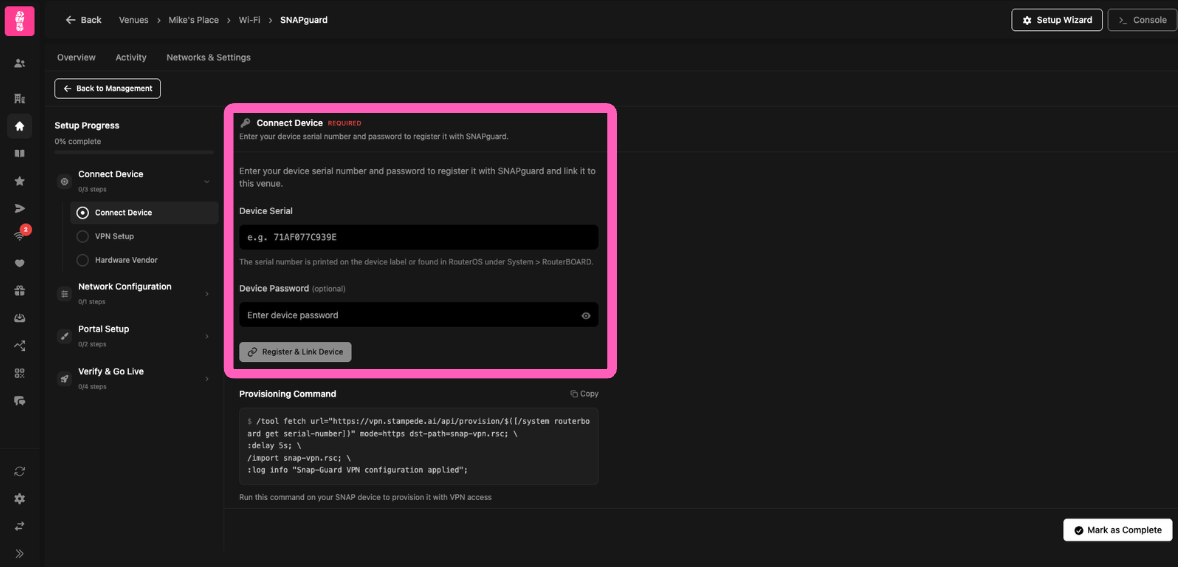 Locating your SNAPguard in the Stampede Portal and linking your venue