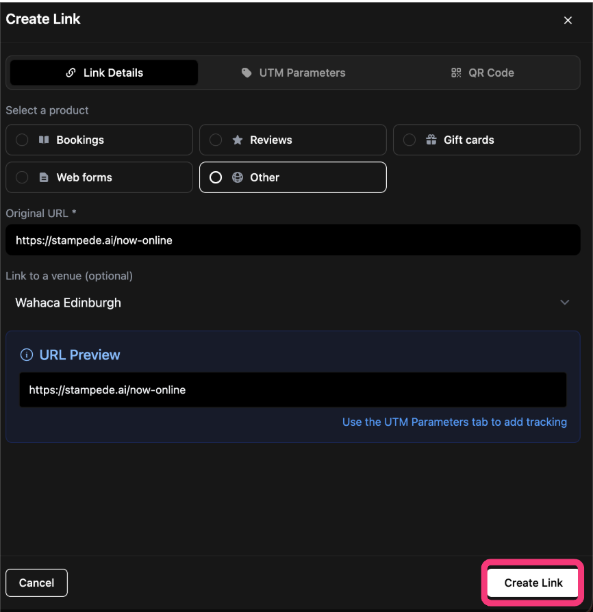 4. Lastly navigate to Wi-Fi > Settings > Scroll down to the bottom > Please replace the Success Page URL to the one appropriate for the venue > Add > Create Link