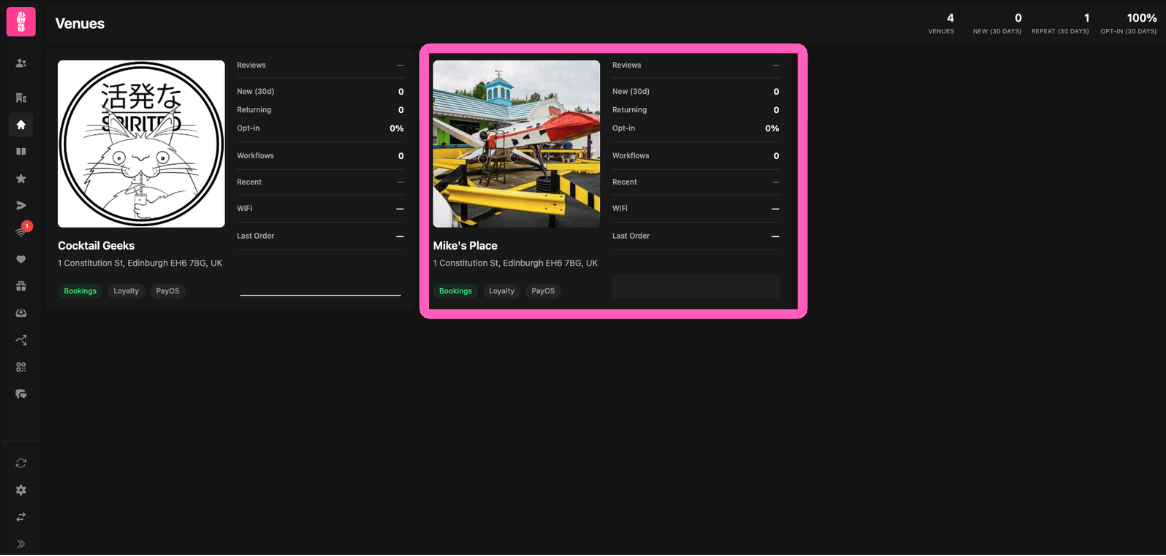 2. Navigate to the venue you'd like to configure