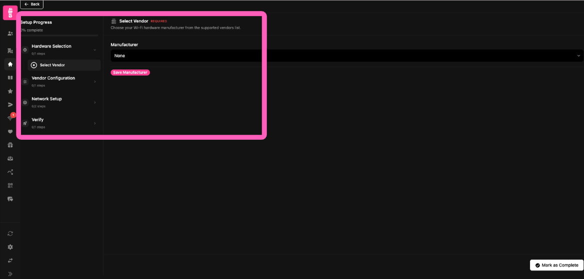 From here please take note of the Vendor Configurations and Network Setup. (Depending on manufacturers it will require entering the hostname, username and password to connect to the controller instead.)