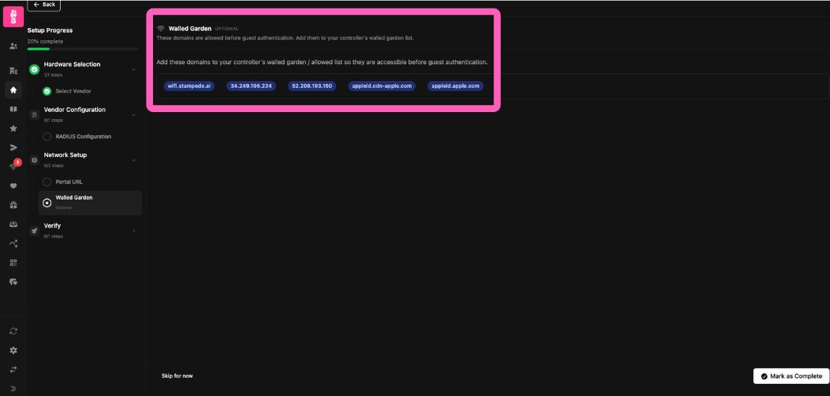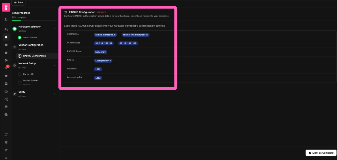 - Ensure your hardware supports external captive portals and RADIUS authentication